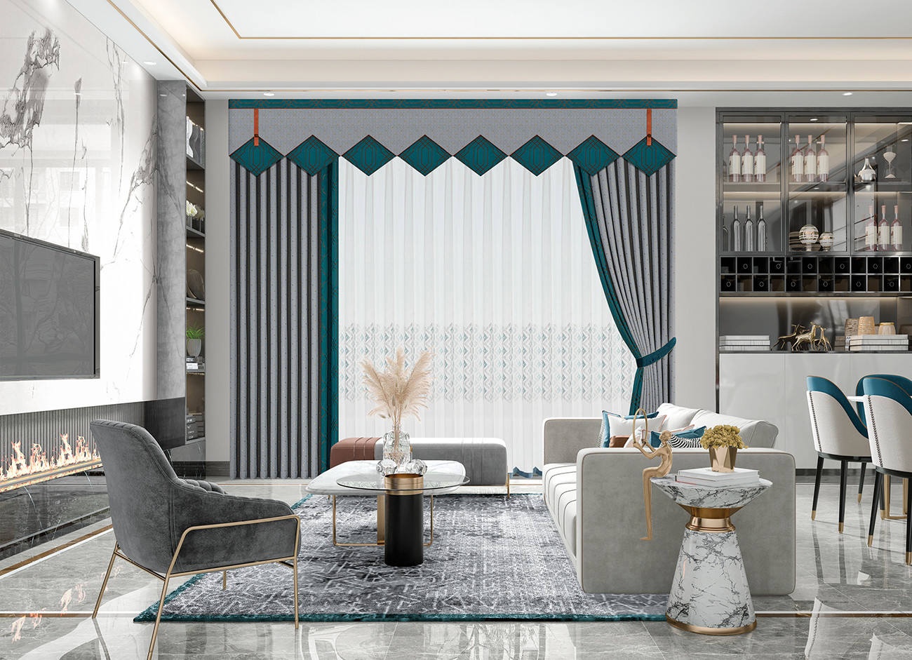 極簡為簡,幾何為繁,從中汲取布藝靈感,菱格的融入讓單一的面料變得靈動,搭配紳士色調,增加空間的時尚感。