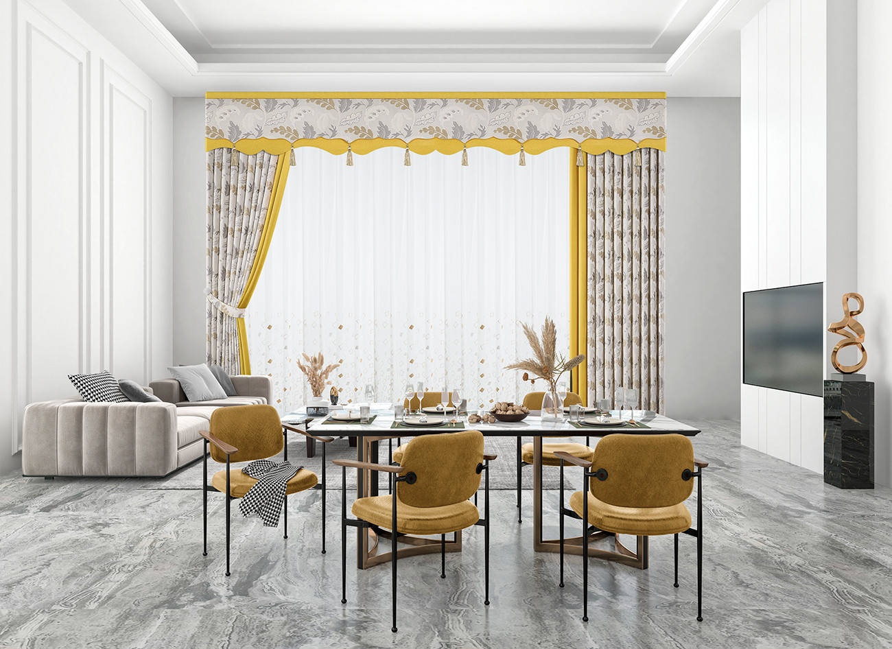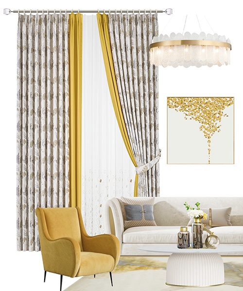 靈感來源于夏日盛開的枝葉,明亮的黃色如同夏日陽光,枝葉的蓬勃姿態展現積極的生活態度,空間不再冰冷,而是溫暖起來。